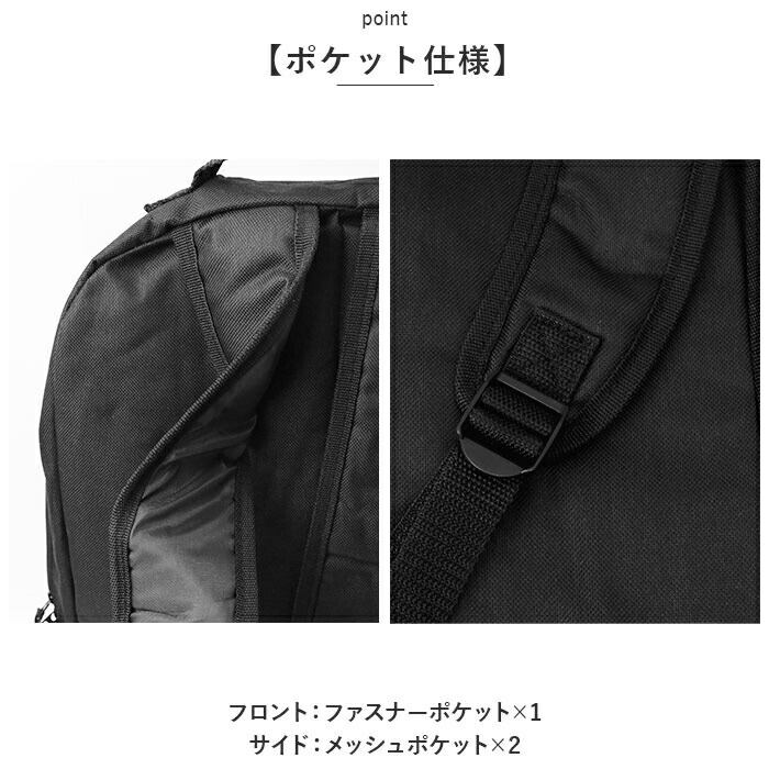 ・フロントやサイドにポケットを配置し、整理整頓ができ実用性◎