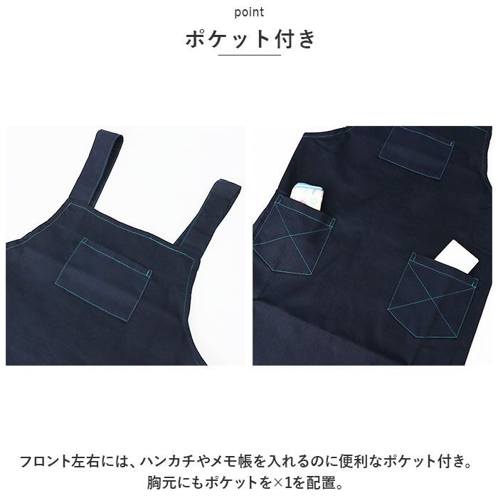 ・フロント左右には、ハンカチやメモ帳を入れるのに便利なポケット付き。胸元にもポケットを×1を配置。