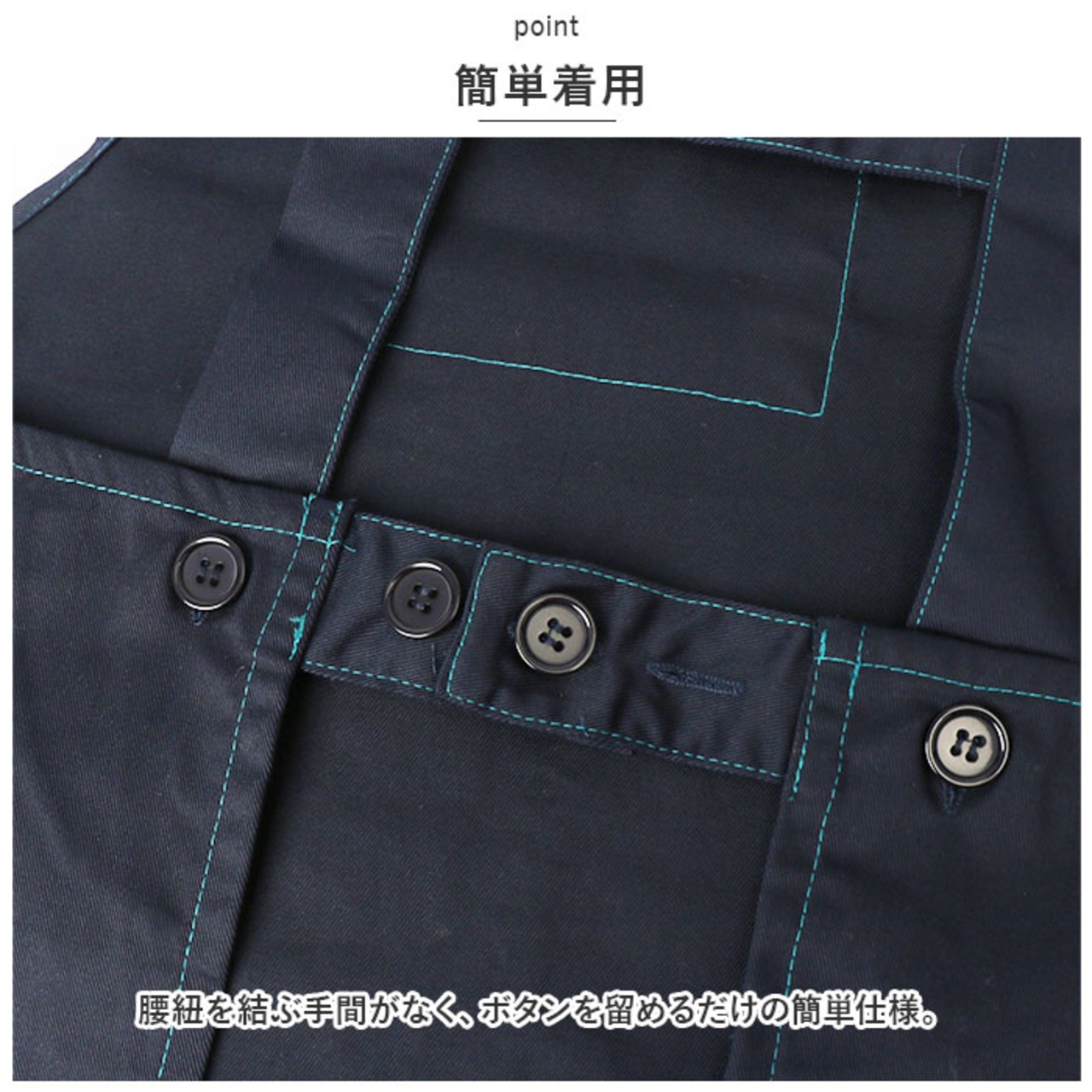 ・腰紐を結ぶ手間がなく、ボタンを留めるだけの簡単仕様。