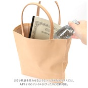 ・まるで紙袋を思わせるようなシンプルなルックスには、A4サイズのファイルがぴったりと収納可能。