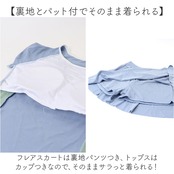 ・フレアスカートは裏地パンツつき、トップスはカップつきなので、そのままサラっと着られる!