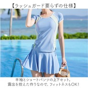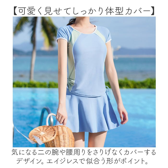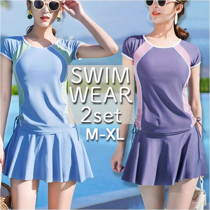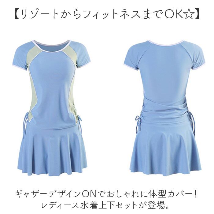 水着 レディース セパレート 通販 上下セット フィットネス水着 スカート 半袖 ラッシュガード 日焼け対策 フレアースカート ノンワイヤー パッド付 ショートパンツ かわいい シンプル おしゃれ オシャレ 学生 女性 海 プール 温泉 スポーツウェア