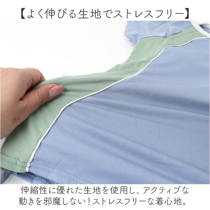 ・速乾性のあるサラっとした生地。乾きやすいので、お洗濯が簡単!パットは取り外しOK。