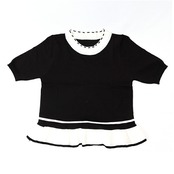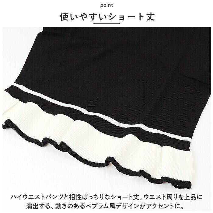 ・ハイウエストパンツと相性ばっちりなショート丈。ウエスト周りを上品に演出する、動きのあるペプラム風デザインがアクセントに。