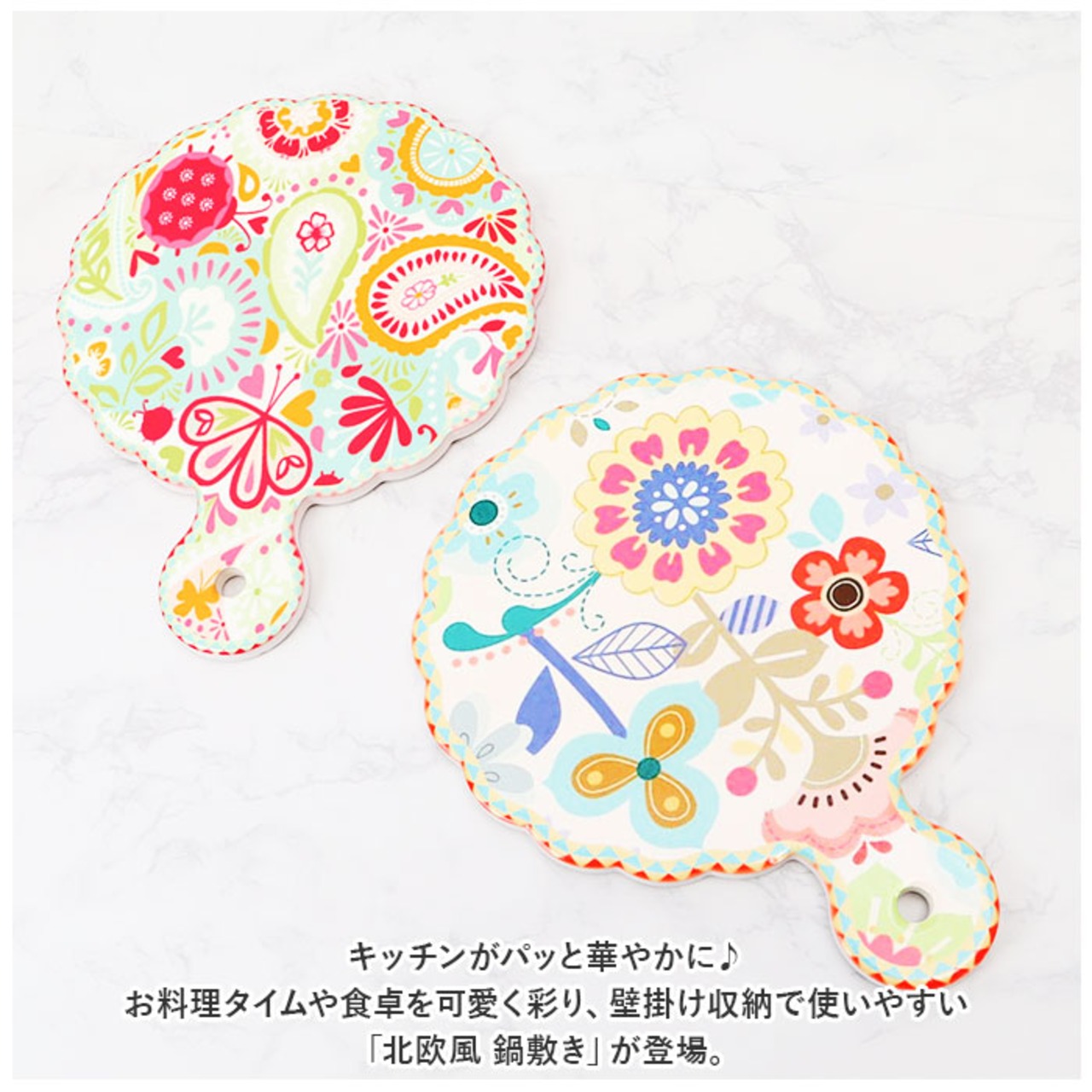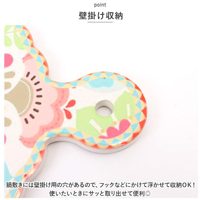 ・キッチンがパッと華やかに♪お料理タイムや食卓を可愛く彩り、壁掛け収納で使いやすい「北欧風 鍋敷き」が登場。