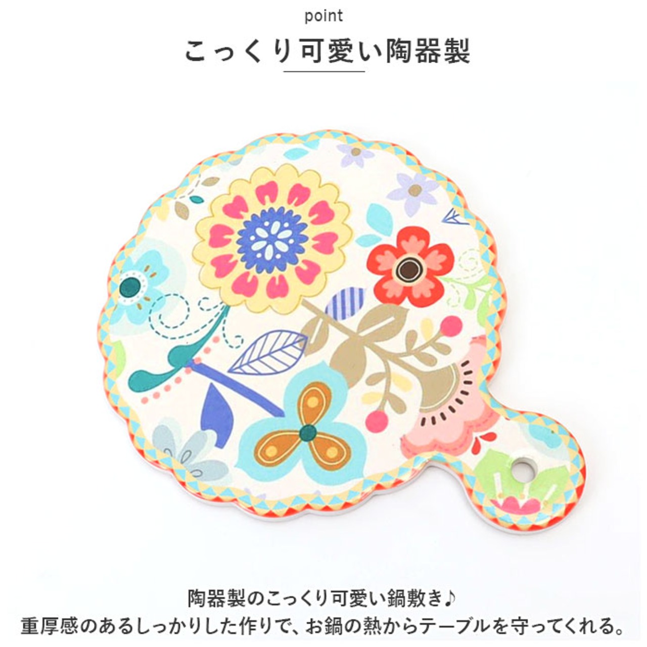 ・陶器製のこっくり可愛い鍋敷き♪重厚感のあるしっかりした作りで、お鍋の熱からテーブルを守ってくれる。