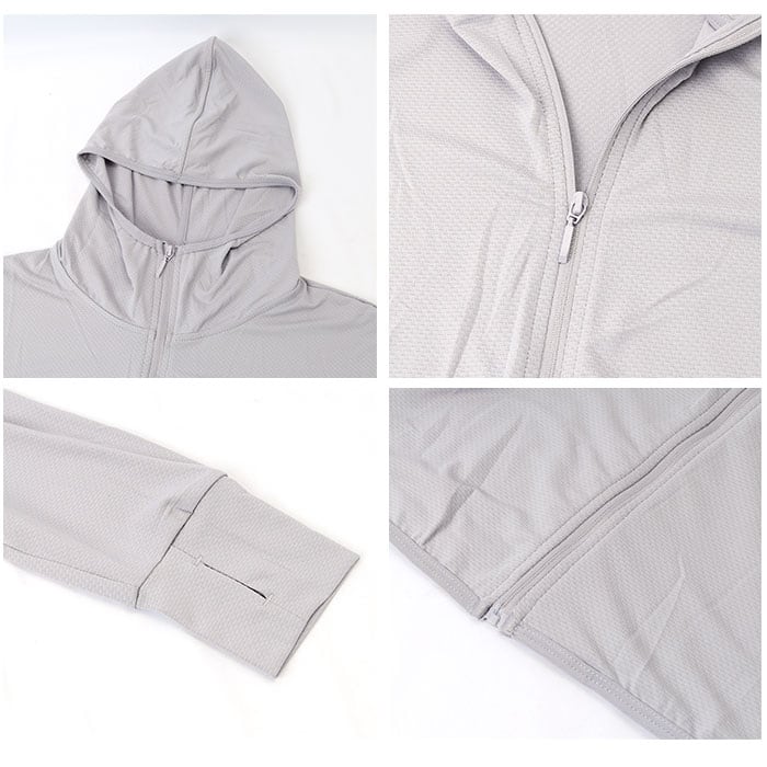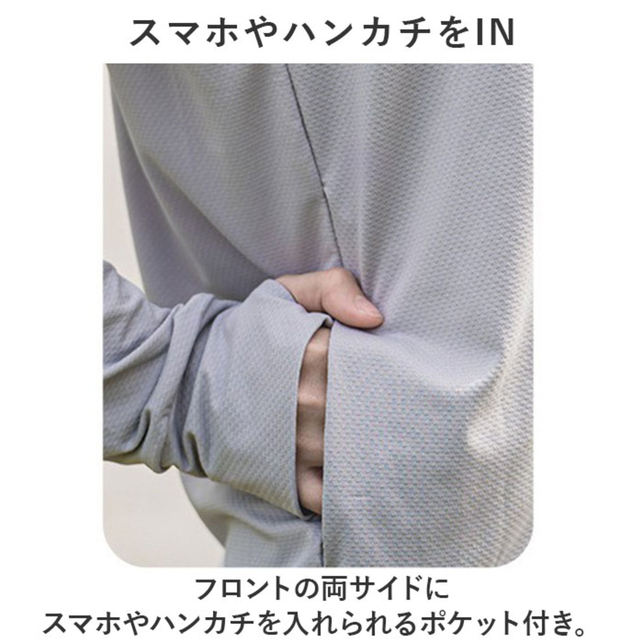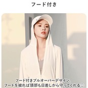 ・フード付きプルオーバーデザイン。フードを被れば頭部も日差しから守ってくれる◎