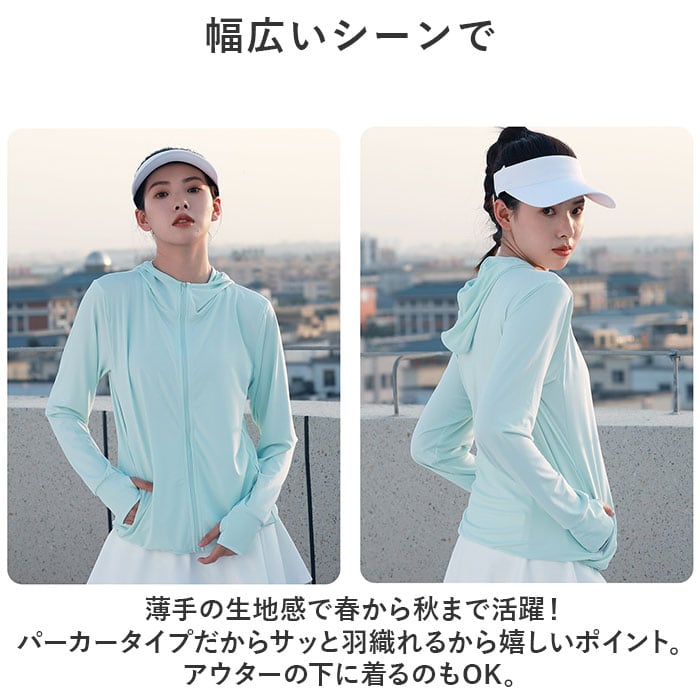 ラッシュガード パーカー レディース 通販 羽織り 羽織 上着 日焼け止め服 紫外線対策 UVカット UV対策 紫外線カット フード付き 長袖 薄手 薄い 冷房対策 通気性 ママ 大人 女の子 日焼け止め 日焼け 春 夏 秋 速乾 防風 アウター おしゃれ