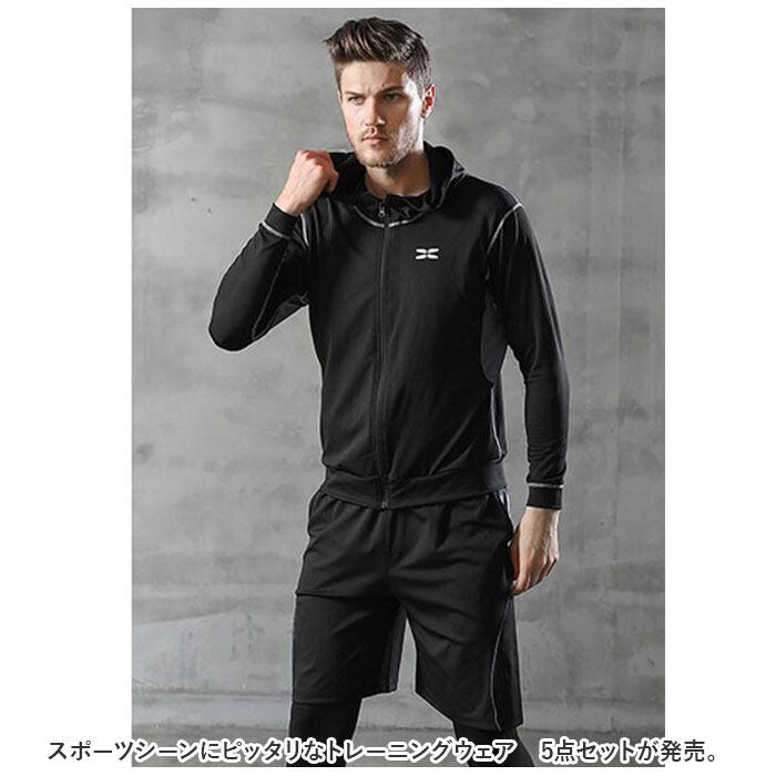 スポーツウェア メンズ 5点セット 通販 トレーニングウェア ランニングウェア コンプレッションウェア ジムウエア 運動着 上下セット 冬 おしゃれ 吸汗 速乾 通気性 伸縮性 オールシーズン ジム ジョギング トレーニング 部活 ゴルフ 野球 ルームウェア