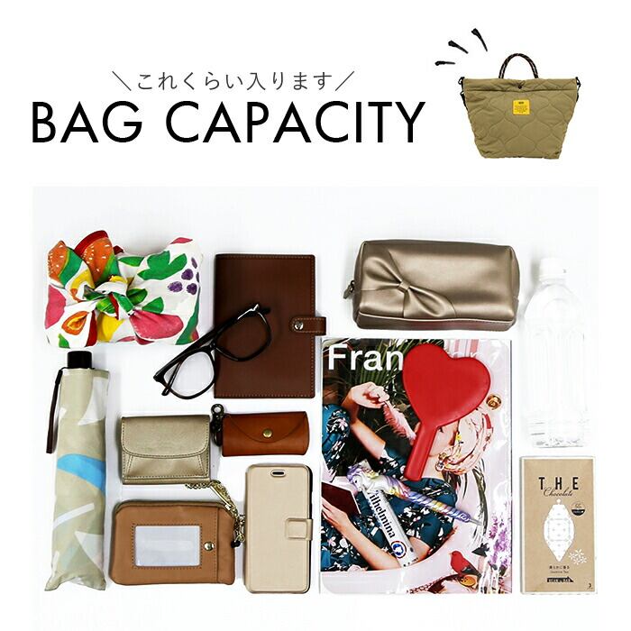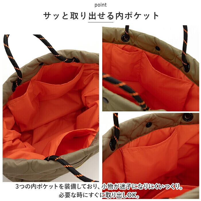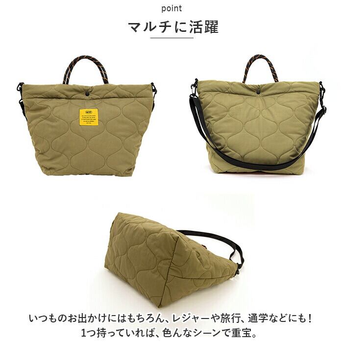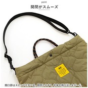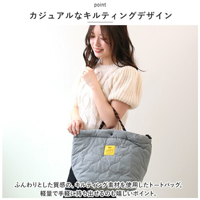 ・ふんわりとした質感の、キルティング素材を使用したトートバッグ。軽量で手軽に持ち出せるのも嬉しいポイント。