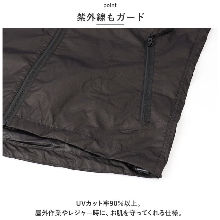 ・UVカット率90%以上。屋外作業やレジャー時に、お肌を守ってくれる仕様。