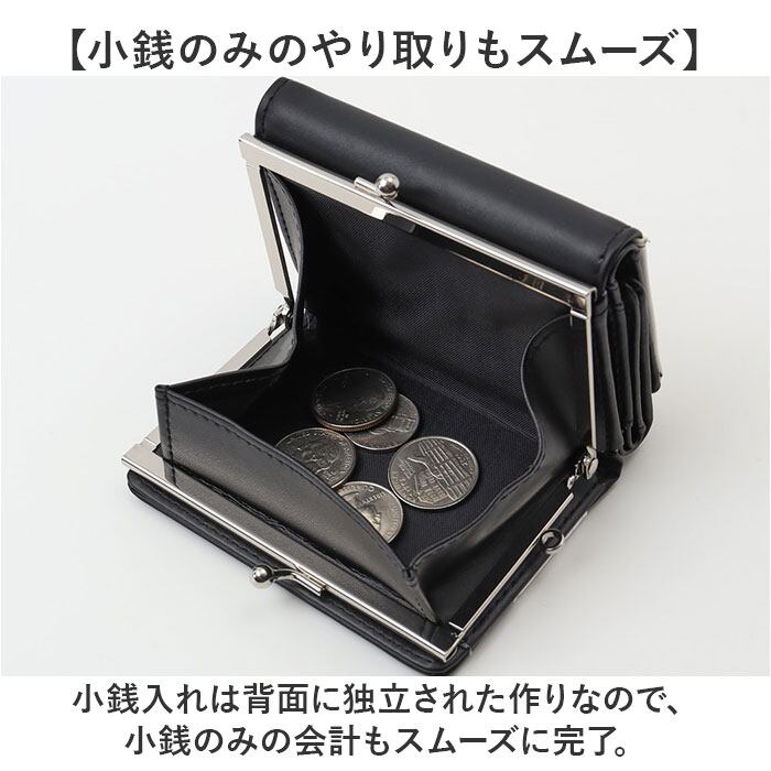 ・小銭入れはパカっと開くがま口仕様。また開くとボックス型になり取り出しやすさUP。