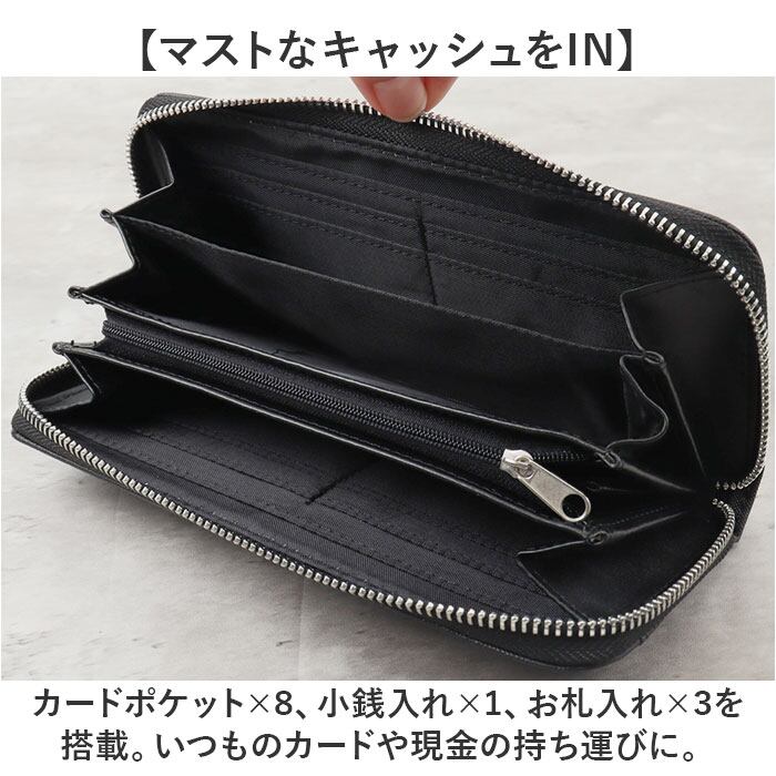 ・カードポケット×8、小銭入れ×1、お札入れ×3を搭載。いつものカードや現金の持ち運びに。