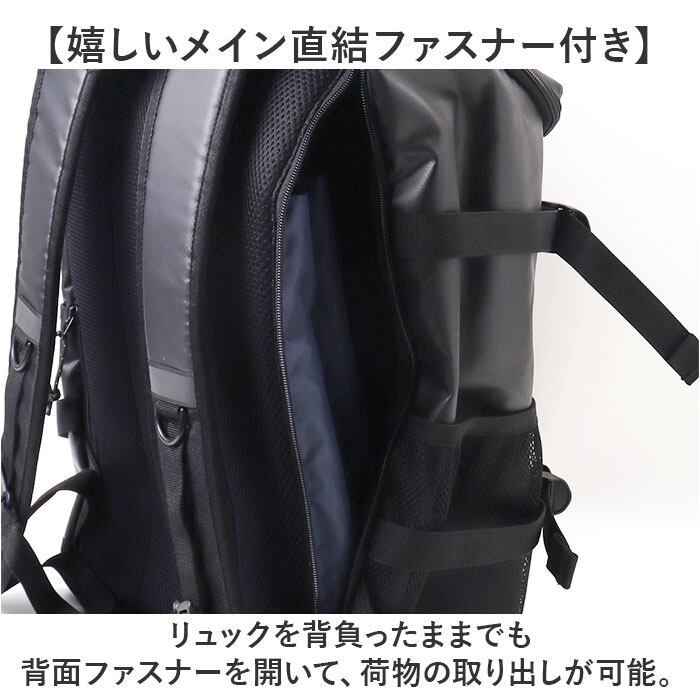 ・リュックを背負ったままでも背面ファスナーを開いて、荷物の取り出しが可能。