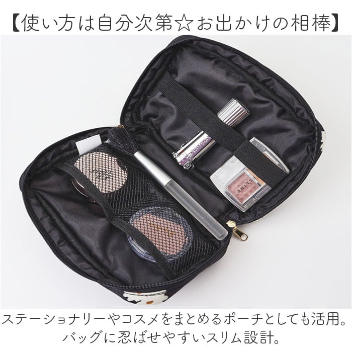 ・ステーショナリーやコスメをまとめるポーチとしても活用。バッグに忍ばせやすいスリム設計。