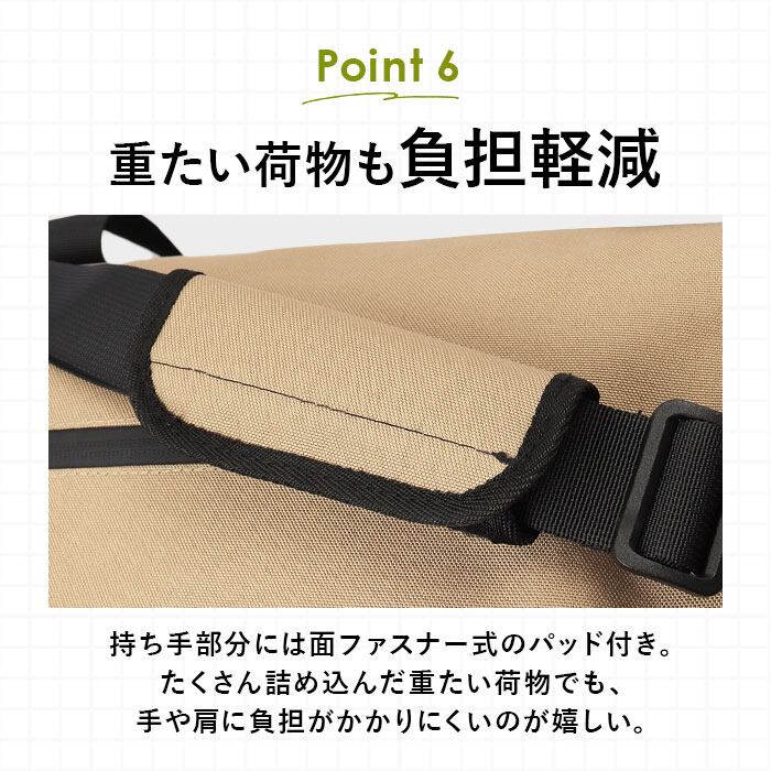 ・短いハンドルを使って手持ちや肩掛け!面ファスナー式の肩パッド付きで、肩にかかる負担を軽減◎長いショルダーを使えば斜め掛けもOK。