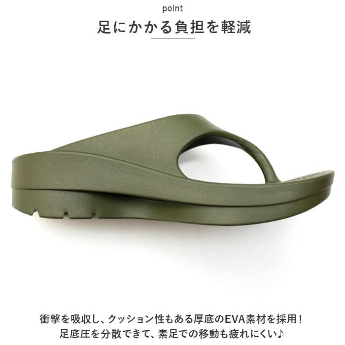 ・衝撃を吸収し、クッション性もある厚底のEVA素材を採用!足底圧を分散できて、素足での移動も疲れにくい♪