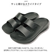 ・水に強く、雨の日はもちろん、プールや海水浴などのレジャーシーンではビーチサンダル代わりに!汚れが気になったら水洗いできて、お手入れもラクラク。