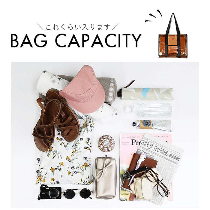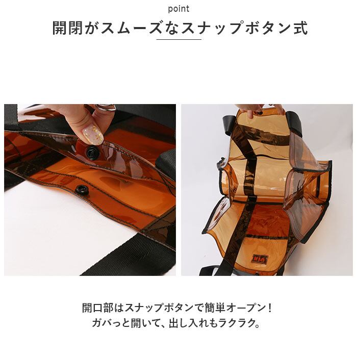 ・涼しげな印象のクリアなPVC素材を使用。水に強く、海やプールなどでも安心◎