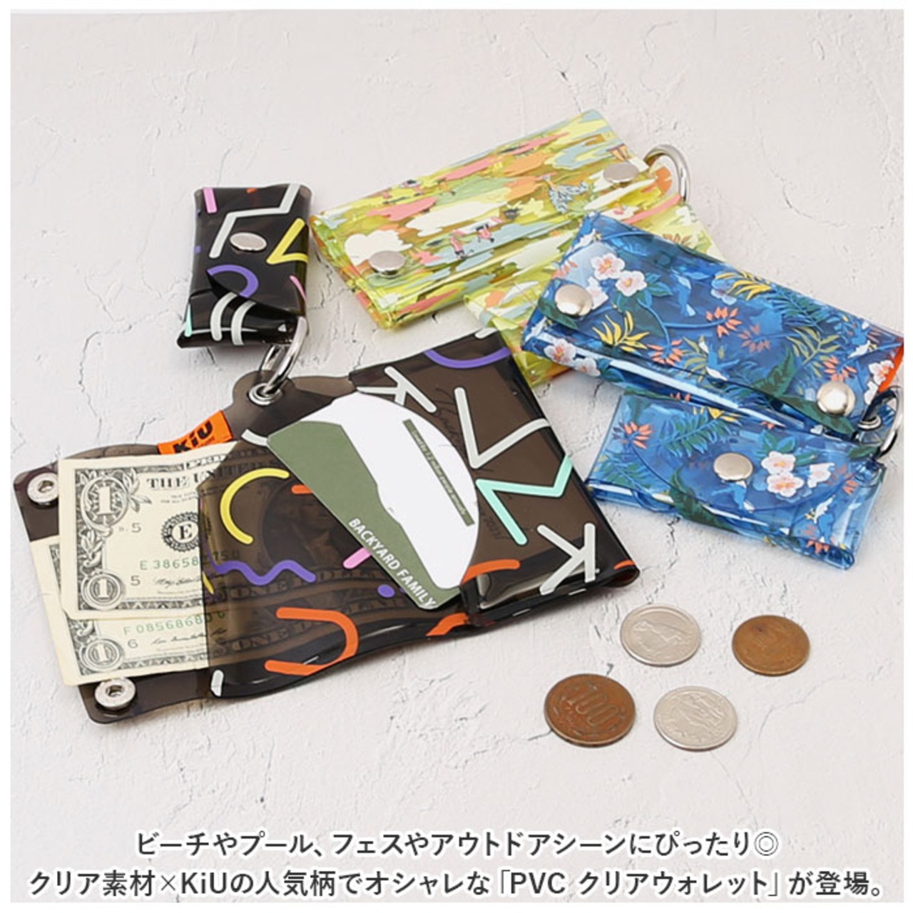 ・ビーチやプール、フェスやアウトドアシーンにぴったり◎クリア素材×KiUの人気柄でオシャレな「PVC クリアウォレット」が登場。