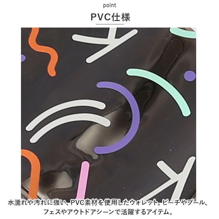 ・水濡れや汚れに強い、PVC素材を使用したウォレット。ビーチやプール、フェスやアウトドアシーンで活躍するアイテム。