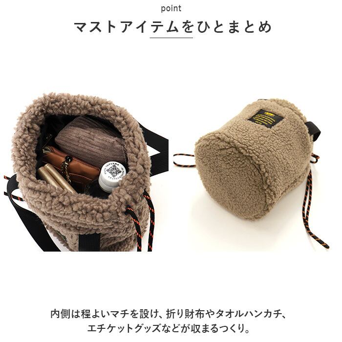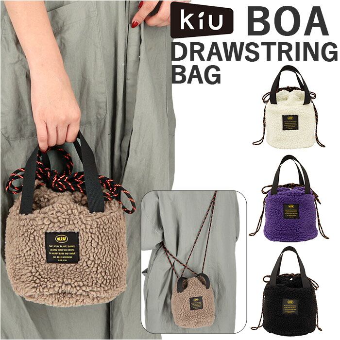 kiu ショルダーバッグ k356 通販 キウ バッグ ショルダーバック 巾着バッグ KiU レディース メンズ 斜めがけ ボア もこもこ 巾着 肩掛け おしゃれ シンプル かわいい 可愛い アウトドア フェス ボアドローストリングバッグ 男女兼用バッグ