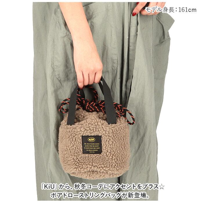 ・「KiU」から、秋冬コーデにアクセントをプラス☆ボアドローストリングバッグが新登場。