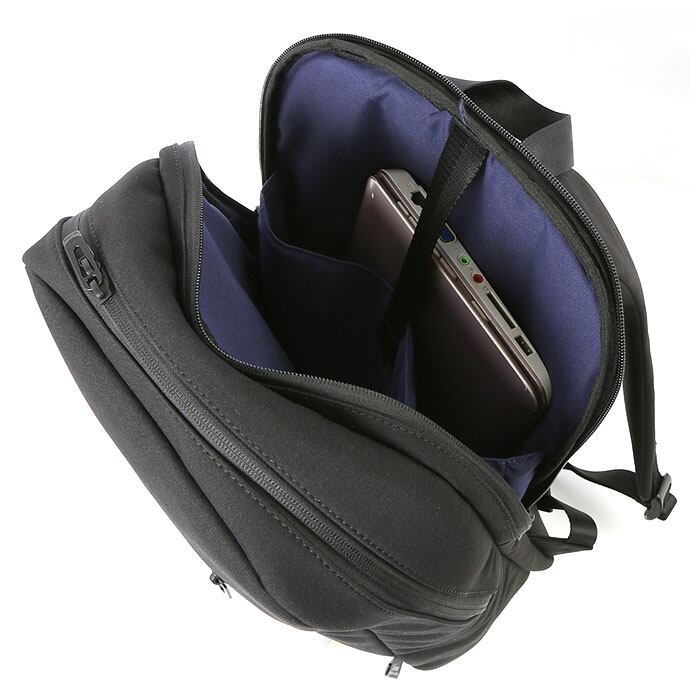 ・スーツにも使用されるしなやかな高品質素材にはっ水性能をプラス!マットな生地感が大人の雰囲気を演出する、軽くて丈夫なデイパック。