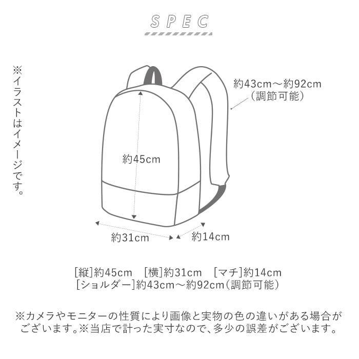 [縦]約45cm/[横]約31cm/[マチ]約14cm