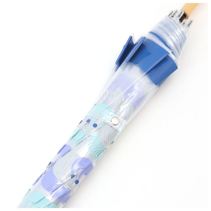 ・傘生地をサッとまとめて手間取らない♪留めバンドはシンプルで使いやすいスナップボタンタイプ。
