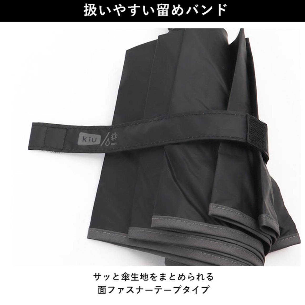 ・サッと傘生地をまとめられる面ファスナーテープタイプ。