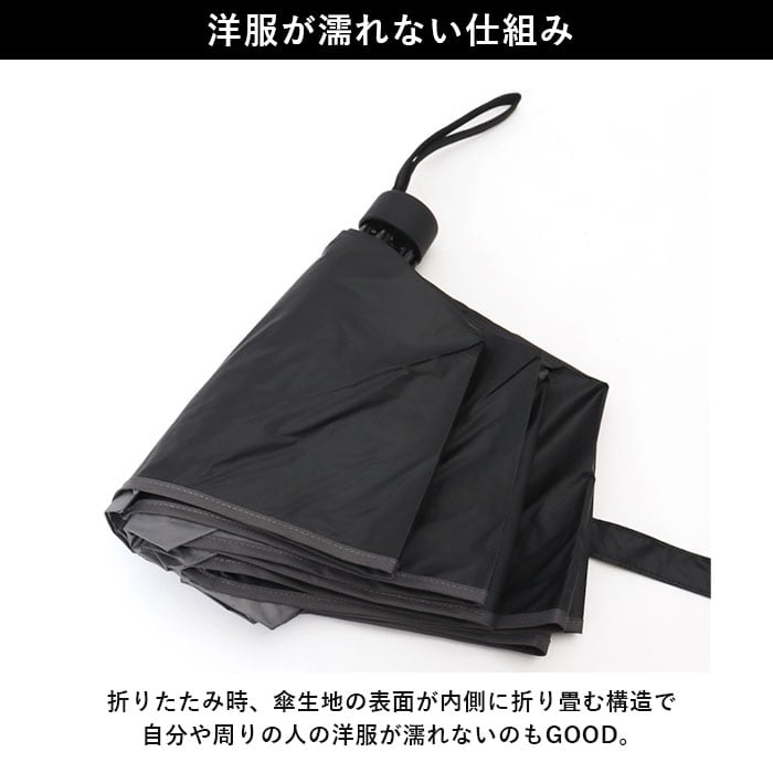 ・折りたたみ時、傘生地の表面が内側に折り畳む構造で自分や周りの人の洋服が濡れないのもGOOD。