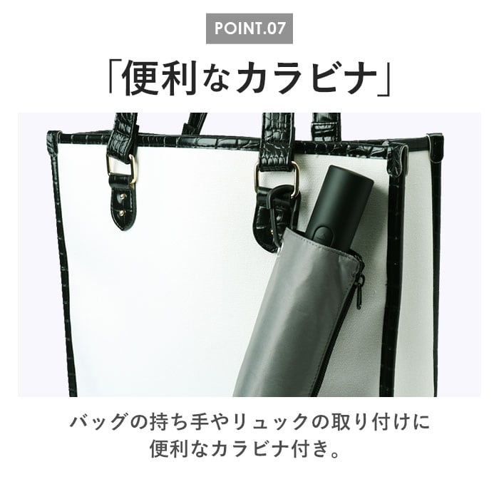 ・バッグの持ち手やリュックの取り付けに便利なカラビナ付き。