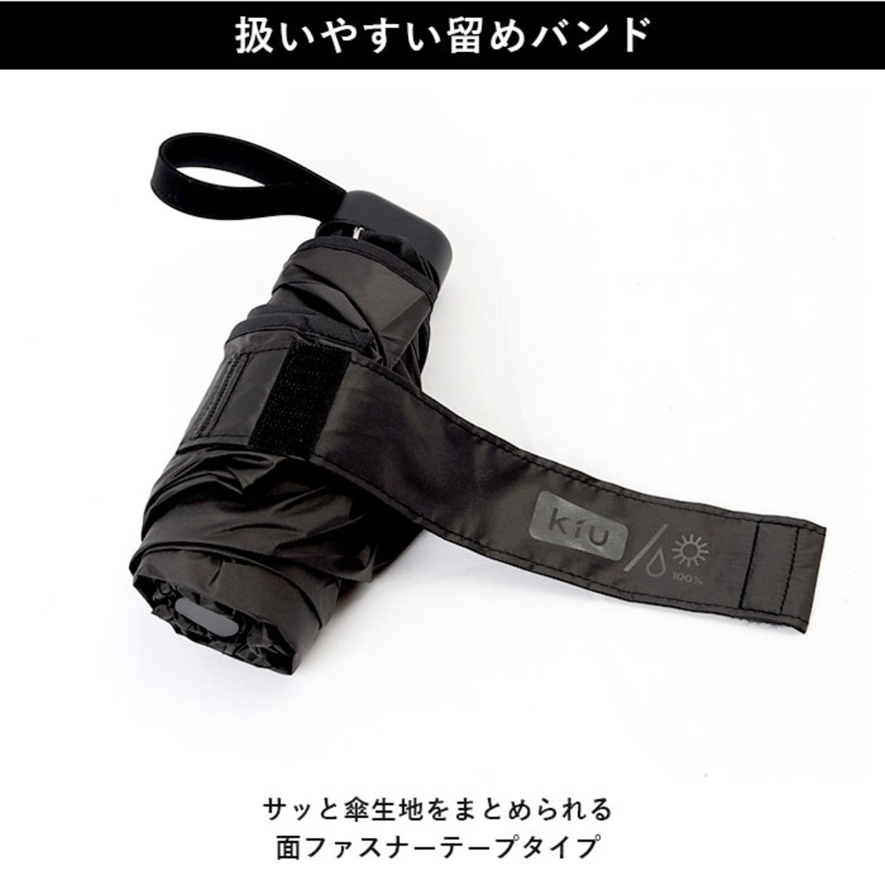 ・サッと傘生地をまとめられる面ファスナーテープタイプ。