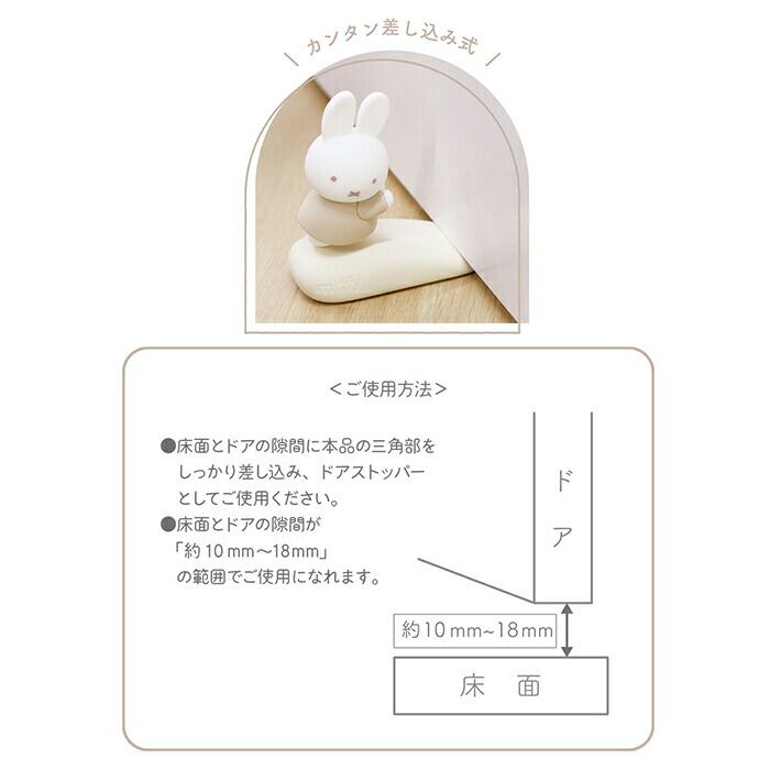 ・底面とドアの隙間に、本体の三角部分を差し込むだけ。約10mm〜18mmの隙間に使用可能。