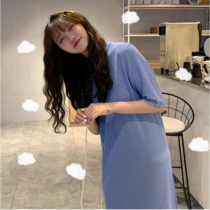・サラっと被るように着られる、Tシャツ素材のワンピース。締め付け感なしで体型カバーも◎