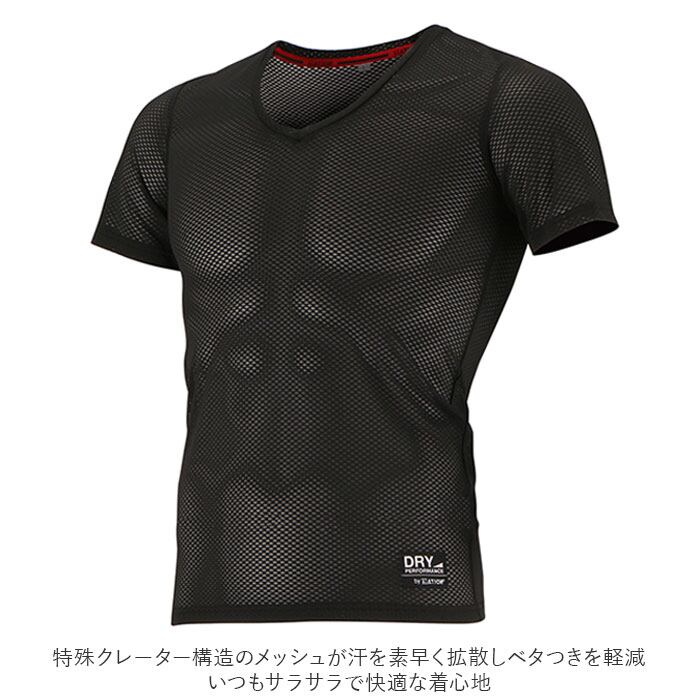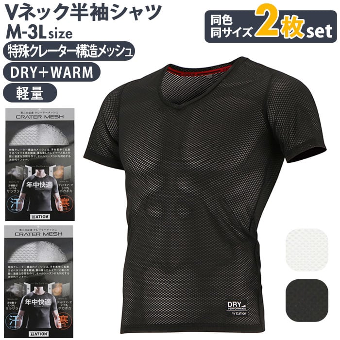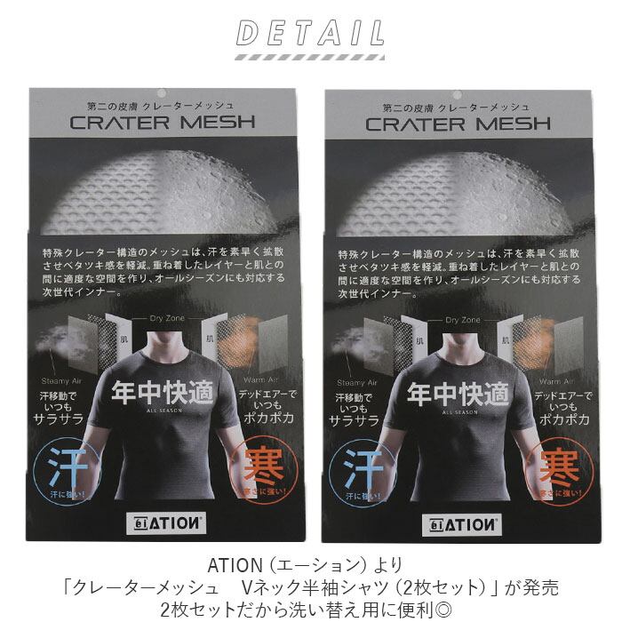インナー メンズ Vネック 2枚組 通販 半袖 メッシュインナー 通勤 通学 屋外作業 スポーツ アウトドア ランニング 登山 ベタつかない さらさら 夏 春夏 冬 秋冬 オールシーズン 吸水速乾 保温 インナーウェア インナーウエア ATION エーション クレーターメッシュ 8823