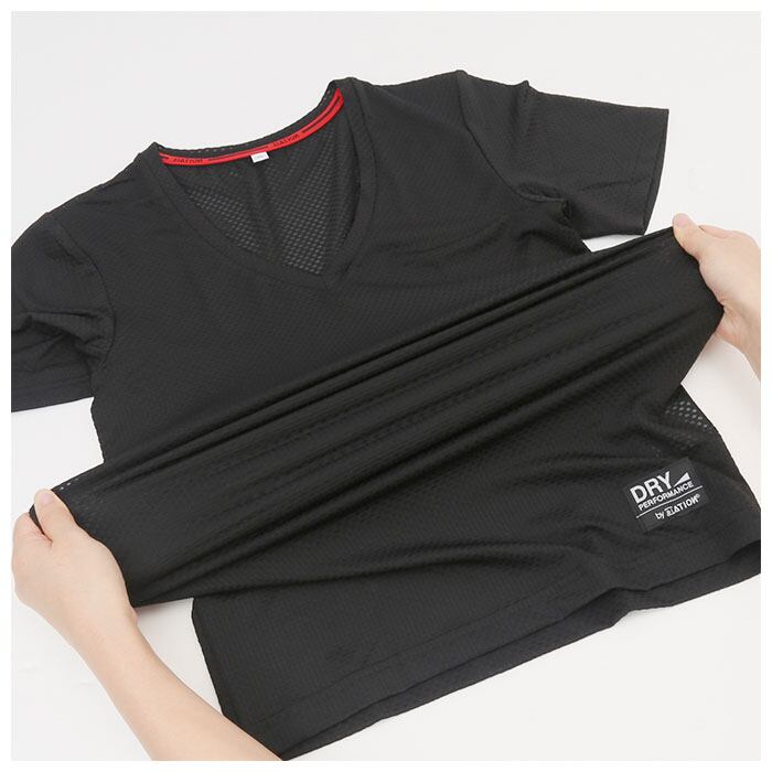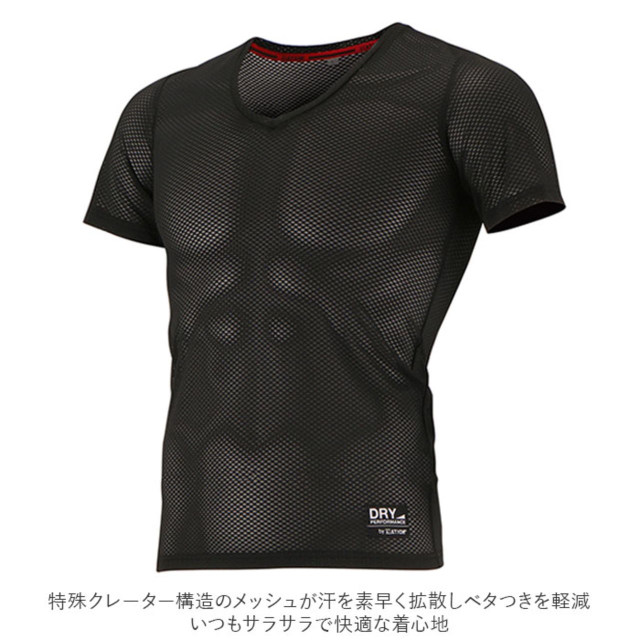 ・特殊クレーター構造のメッシュが汗を素早く拡散しベタつきを軽減。いつもサラサラで快適な着心地。