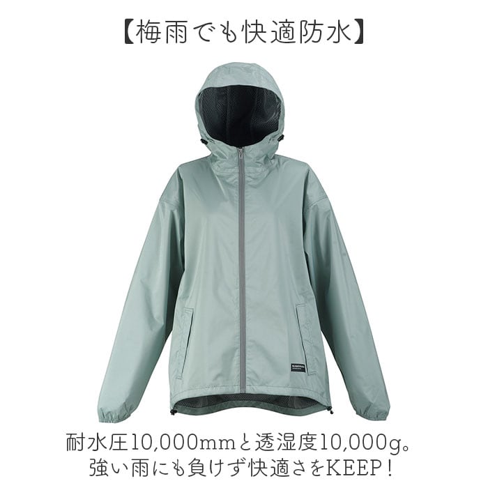 ・耐水圧10.000mmと透湿度10.000g。強い雨にも負けず快適さをKEEP!