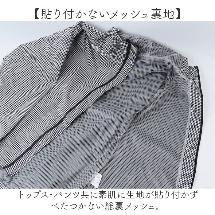 ・トップス・パンツ共に素肌に生地が貼り付かずべたつかない総裏メッシュ。