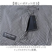 ・ハンカチやスマホが入るサイズのポケットをトップスのサイドに配置。