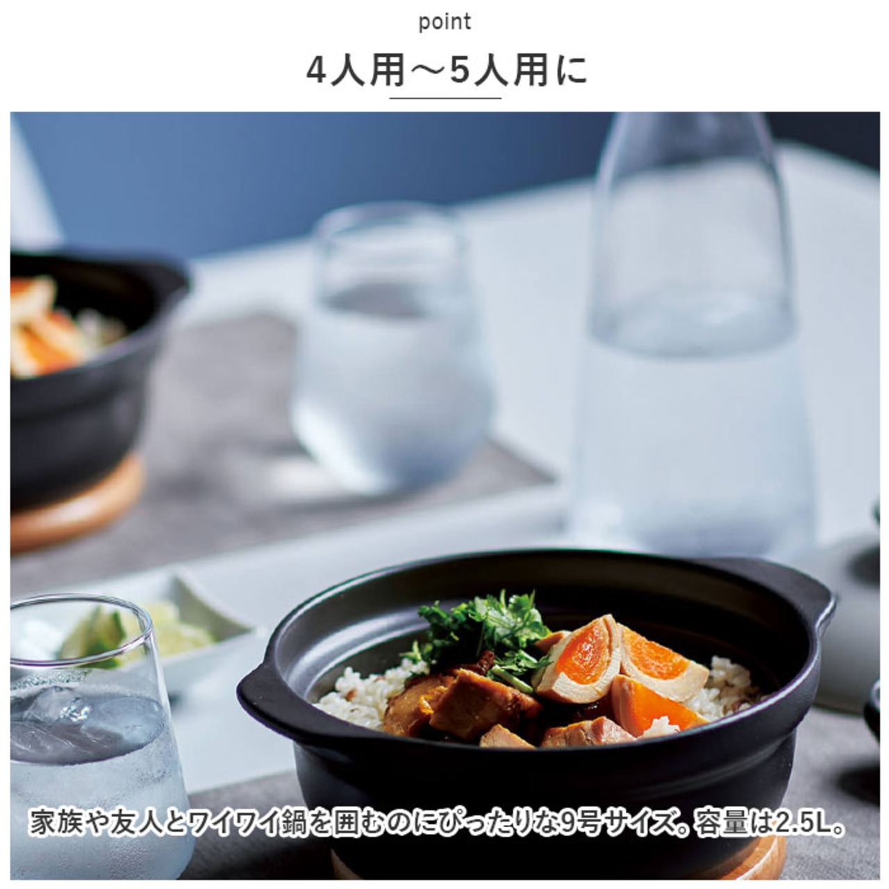 ・家族や友人とワイワイ鍋を囲むのにぴったりな9号サイズ。容量は2.5L。