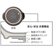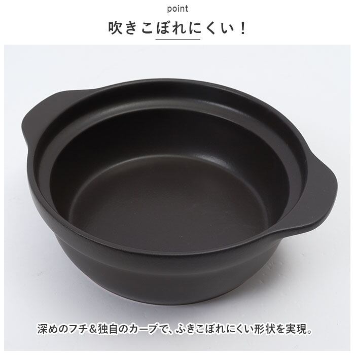 ・深めのフチ&独自のカーブで、ふきこぼれにくい形状を実現。
