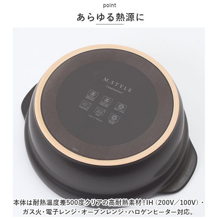 ・本体は耐熱温度差500度クリアの高耐熱素材!IH(200V/100V)・ガス火・電子レンジ・オーブンレンジ・ハロゲンヒーター対応。