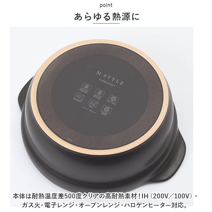 ・本体は耐熱温度差500度クリアの高耐熱素材!IH(200V/100V)・ガス火・電子レンジ・オーブンレンジ・ハロゲンヒーター対応。