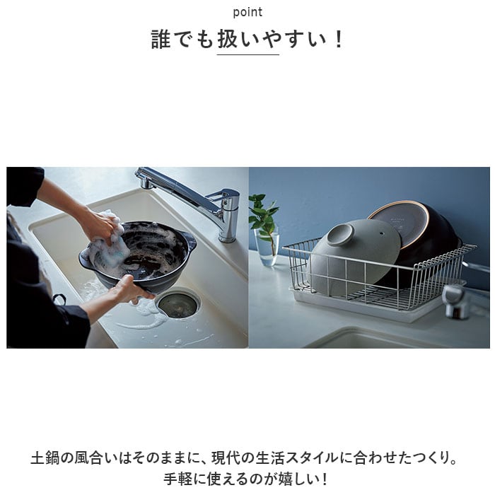 ・土鍋の風合いはそのままに、現代の生活スタイルに合わせたつくり。手軽に使えるのが嬉しい!