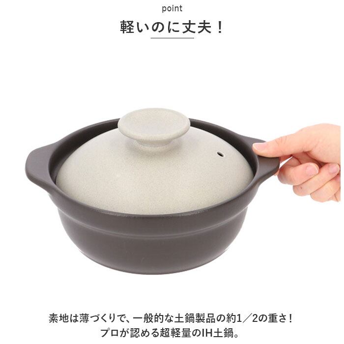 ・素地は薄づくりで、一般的な土鍋製品の約1/2の重さ!プロが認める超軽量のIH土鍋。
