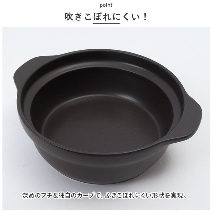 ・深めのフチ&独自のカーブで、ふきこぼれにくい形状を実現。