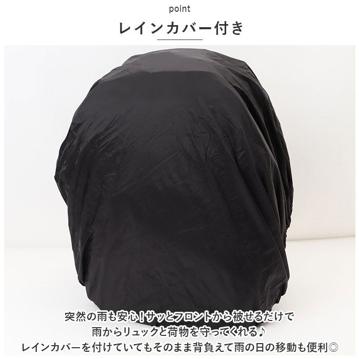 ・突然の雨も安心!サッとフロントから被せるだけで雨からリュックと荷物を守ってくれる♪レインカバーを付けていてもそのまま背負えて雨の日の移動も便利◎