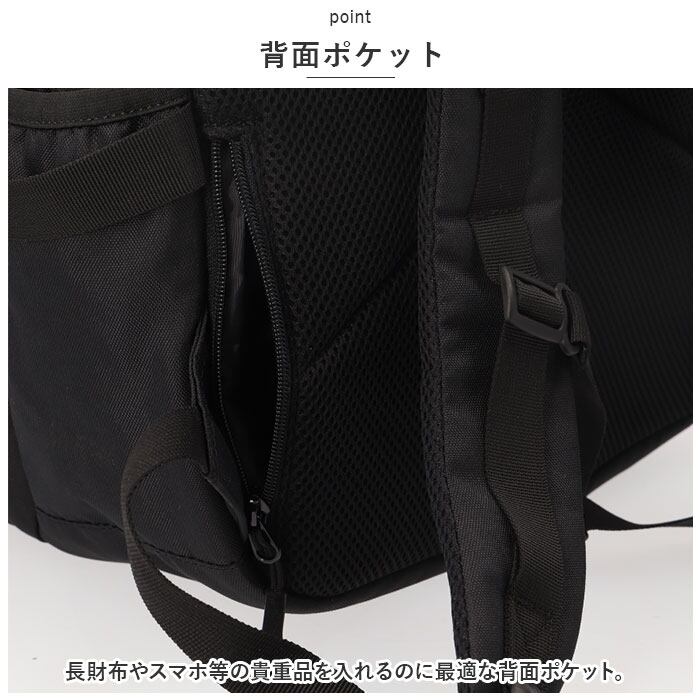 ・長財布やスマホ等の貴重品を入れるのに最適な背面ポケット。